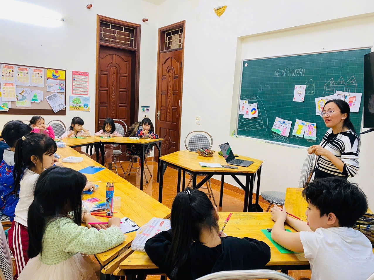 - Vẽ sáng tạo: Mỗi bức tranh là một thế giới riêng của trẻ, nơi các em được thỏa sức sáng tạo, thể hiện cảm xúc và nuôi dưỡng tâm hồn nghệ thuật.