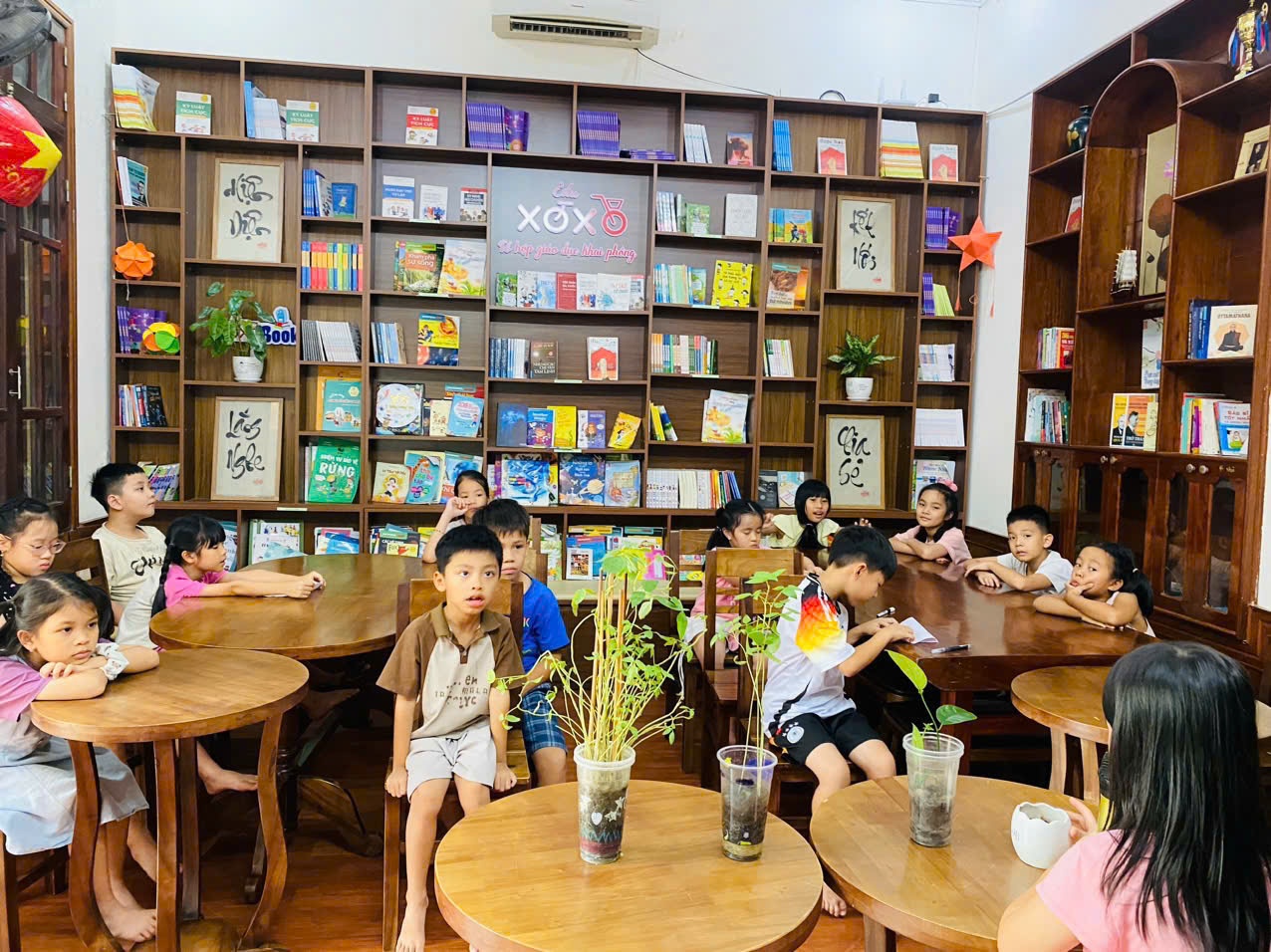 Ngay khi bước vào XOXO, học viên sẽ được chào đón bởi thư viện rộng 120m² với hơn 2.000 đầu sách đa dạng. Không gian đọc được bố trí khoa học, ánh sáng đầy đủ, yên tĩnh và thoáng mát. Đây chính là nơi các em thỏa sức khám phá tri thức, nuôi dưỡng niềm say mê học hỏi và rèn luyện thói quen tự học.