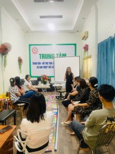 100% giáo viên tại trung tâm đều tốt nghiệp cao đẳng, đại học đúng chuyên ngành như mầm non, tiểu học, công tác xã hội và giáo dục đặc biệt. Kiến thức sư phạm vững vàng giúp các thầy cô hiểu rõ tâm lý từng độ tuổi, từ đó lựa chọn phương pháp truyền đạt phù hợp và hiệu quả.