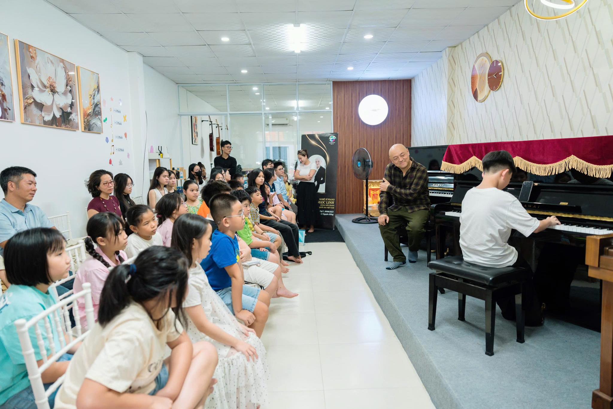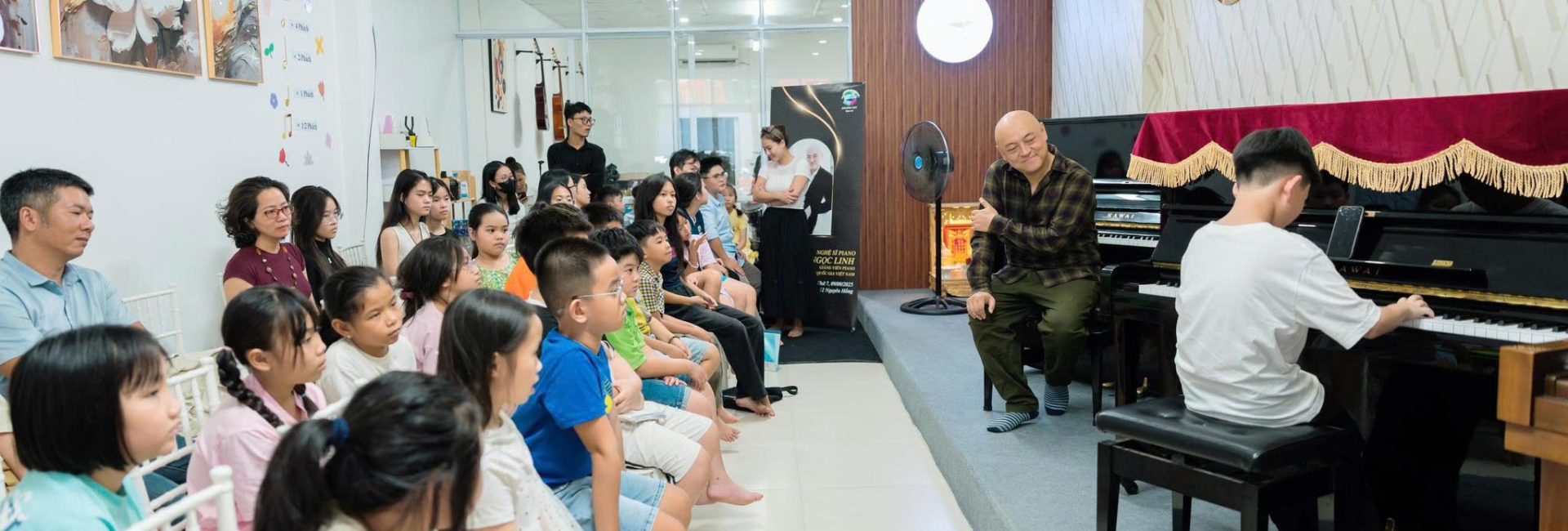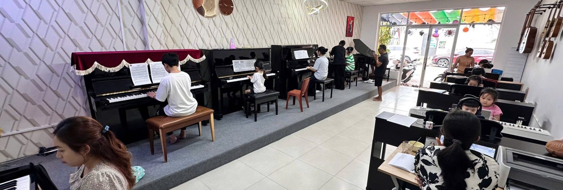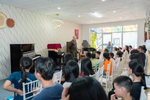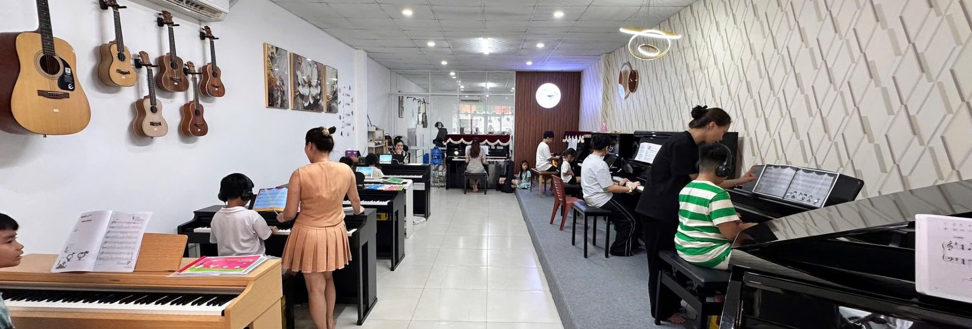 Điểm đặc biệt là mỗi lớp đều được thiết kế linh hoạt theo độ tuổi và mục tiêu học tập, tạo sự thoải mái nhưng vẫn đảm bảo tính chuyên nghiệp. Trung tâm còn thường xuyên tổ chức các buổi biểu diễn, giao lưu nghệ thuật và chương trình “Mini Concert” nhằm giúp học viên rèn sự tự tin, bản lĩnh sân khấu và khả năng trình diễn chuyên nghiệp.
