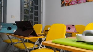 Các lớp học được trang bị hệ thống thiết bị giảng dạy tiên tiến như: Tivi, máy tính bảng, tai nghe chất lượng cao. Kết hợp cùng với Wifi mạnh mẽ, trẻ có thể dễ dàng tiếp cận với nguồn tài liệu phong phú, từ đó việc học tiếng Anh trở nên sinh động và hấp dẫn hơn bao giờ hết.