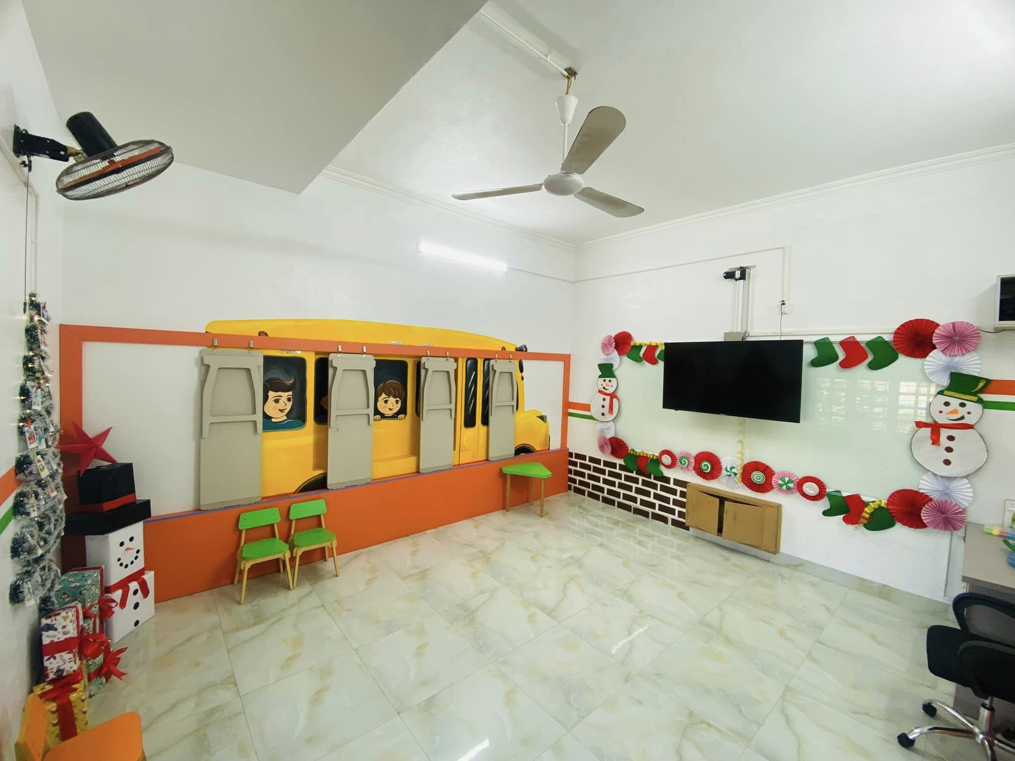 Mỗi phòng học tại trung tâm có diện tích rộng từ 20 – 25m2, đảm bảo không gian đủ lớn để học viên thoải mái tham gia các hoạt động học tập. Đặc biệt, mỗi phòng học được trang bị một tivi thông minh điều khiển tự động, có khả năng tự động nâng lên và hạ xuống linh hoạt , không gây mỏi mắt, mỏi cổ giúp hoc sinh tập trung trong suốt quá trình học tập. Hệ thống loa âm thanh tích hợp giúp tăng cường trải nghiệm học tập, đảm bảo rõ ràng và sinh động trong quá trình giảng dạy.