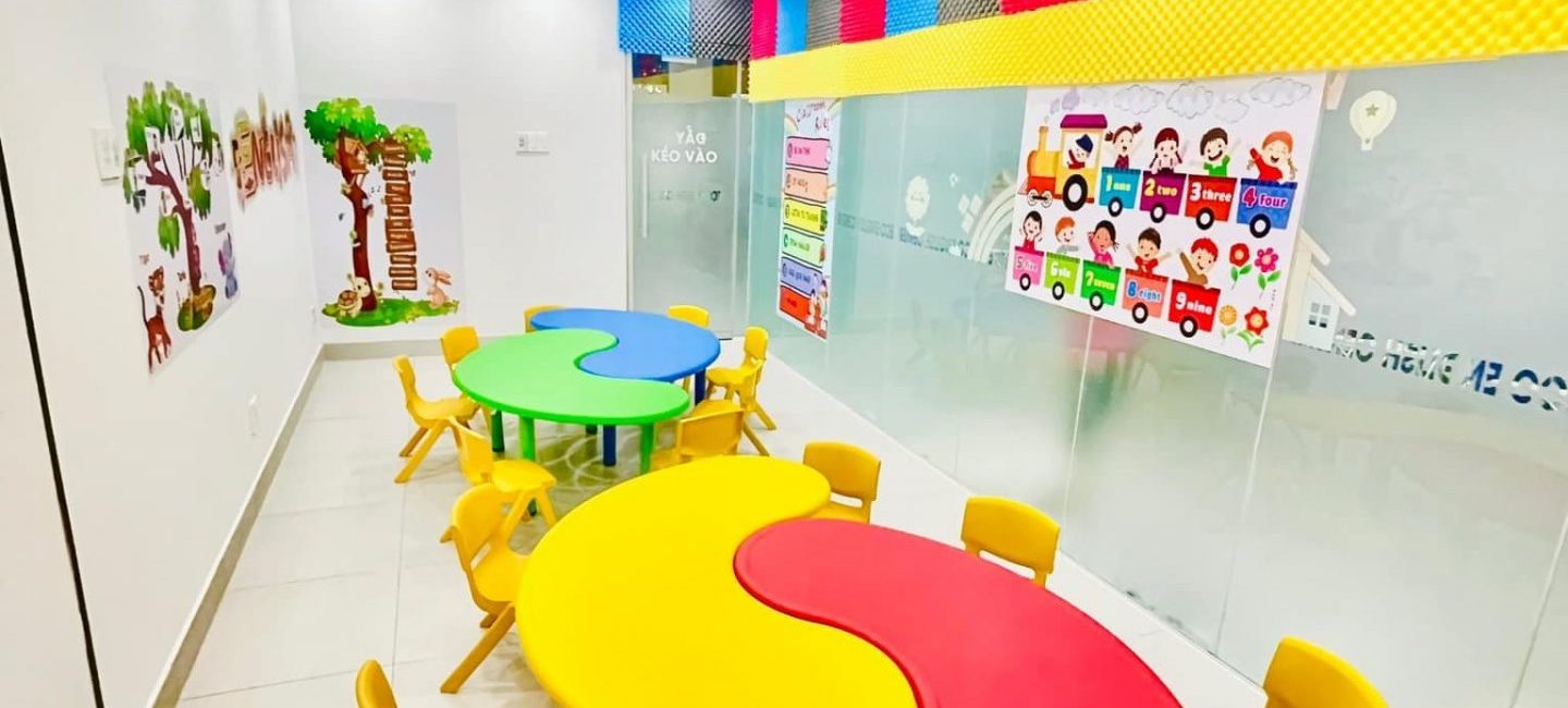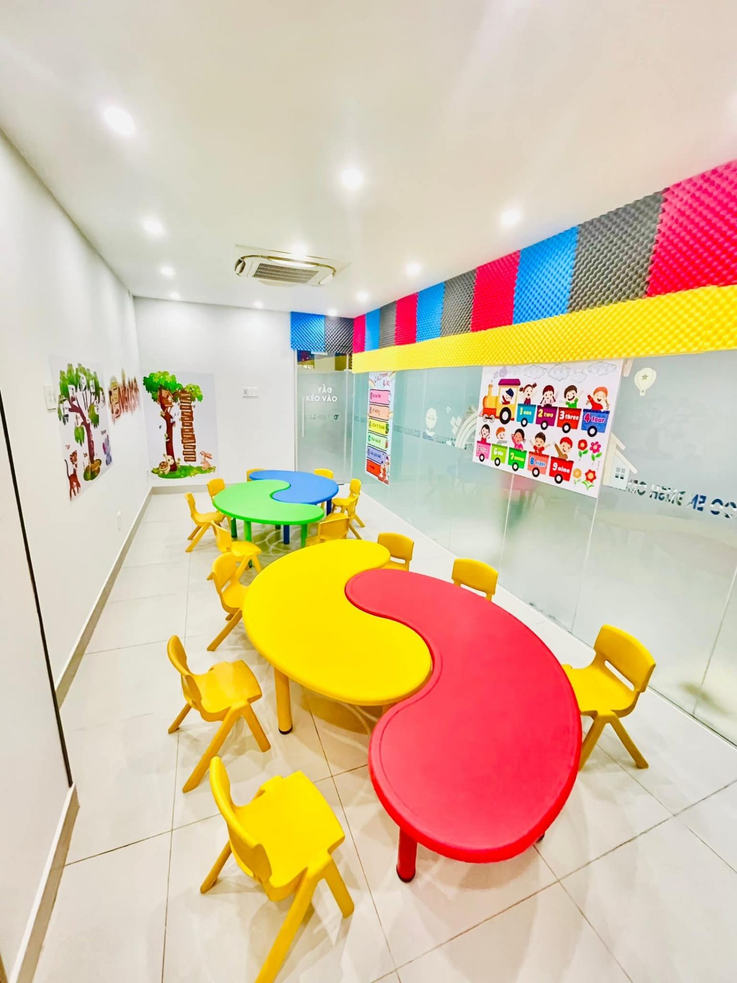 Lớp học được thiết kế đầy đủ màu sắc, âm thanh giúp con chống buồn ngủ khi học.