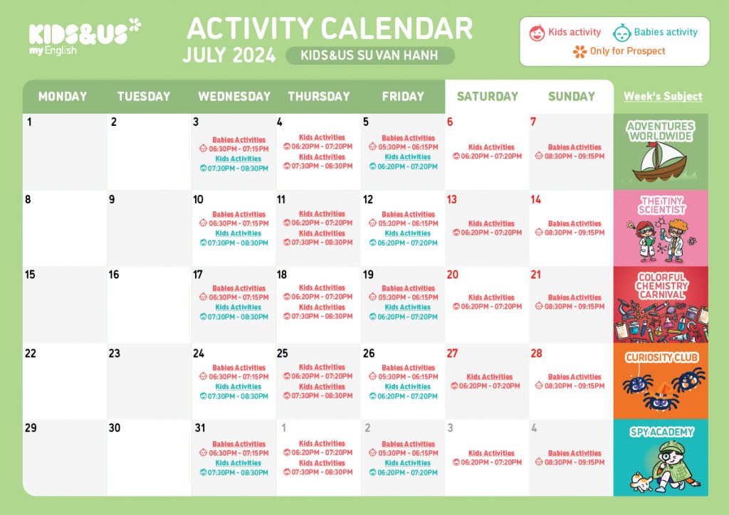 Kids&Us tổ chức những hoạt động xuyên suốt ngày nghỉ để khuyến khích việc học Tiếng Anh của trẻ.