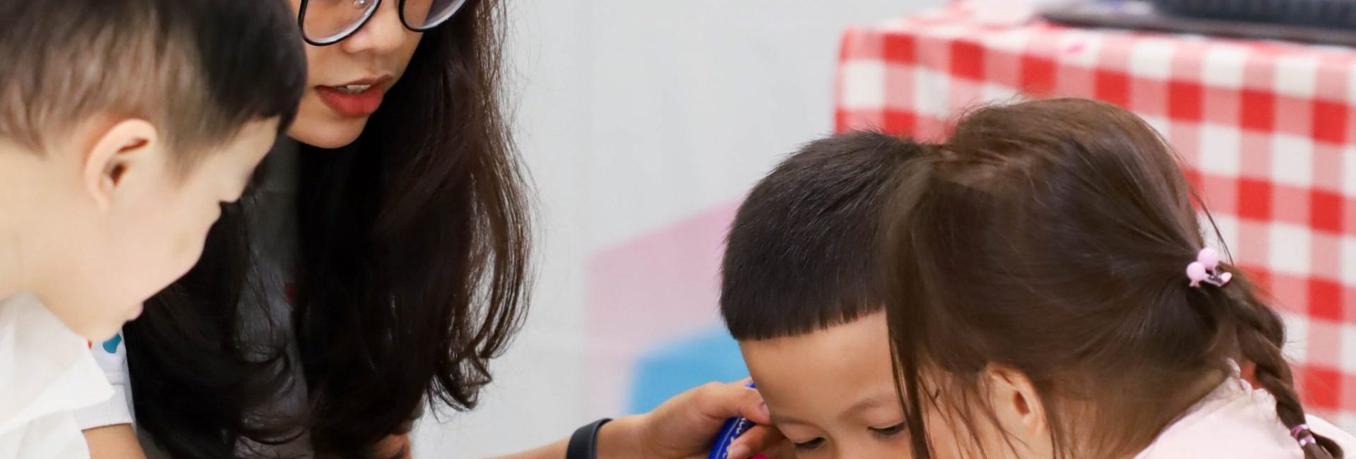 Sĩ số lớp học nhỏ: Lớp học của Kids&Us được thiết kế với sĩ số nhỏ, tối đa 5 trẻ đối với các trẻ từ 1 – 2 tuổi và tối đa 8 trẻ đối với các trẻ từ 3 – 7 tuổi, đảm bảo sự quan tâm và hỗ trợ tối đa.