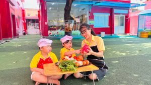 - Dinh dưỡng của bé: Chế độ dinh dưỡng cân bằng, đa dạng nguồn thực phẩm, nguyên liệu được lấy từ những nhà cung cấp uy tín. Quản lý quy trình chế biến dựa trên tiêu chuẩn vệ sinh an toàn thực phẩm.
