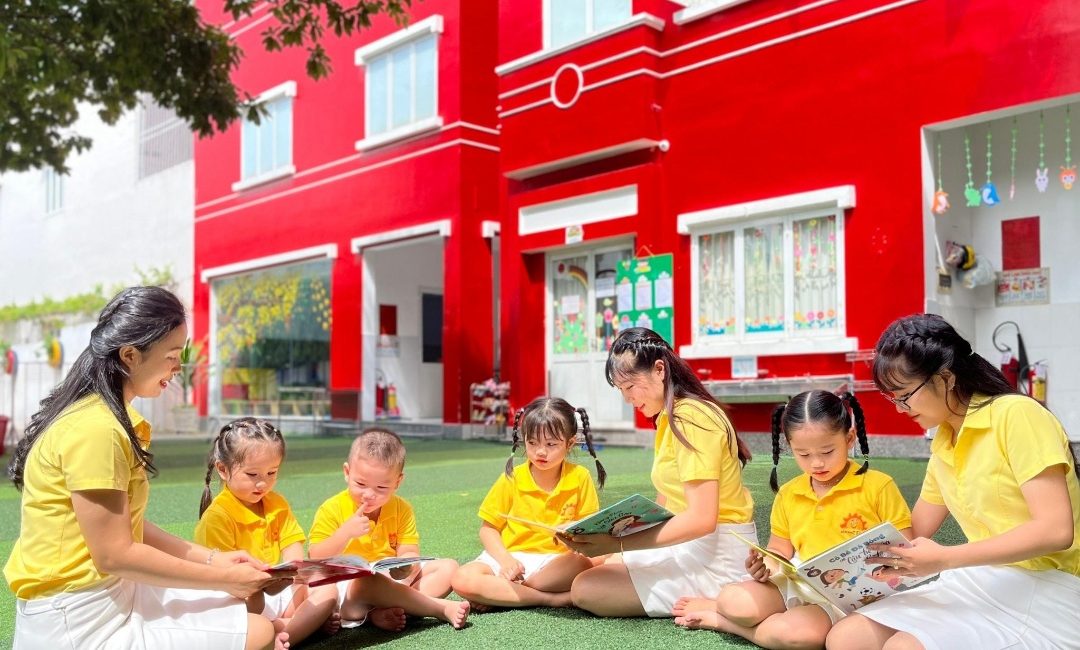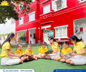 Chương Trình Làm Quen với Tiếng Việt: Ở mầm non, Bé tham gia trải nghiệm các hoạt động nghe, đọc và nhìn qua những cuốn truyện tranh, cổ tích, nhịp điệu, truyện chữ, hình ảnh minh họa và video. Các Bé cùng chia sẻ những câu chuyện, nhịp điệu, ký hiệu, tranh ảnh và diễn kịch để tôn vinh các thành tựu của cá nhân và lớp học. Bé vẽ, lưu lại và kể về những ý tưởng, trải nghiệm của bản thân; tham gia vào các hoạt động ngôn ngữ theo nhóm và lớp.