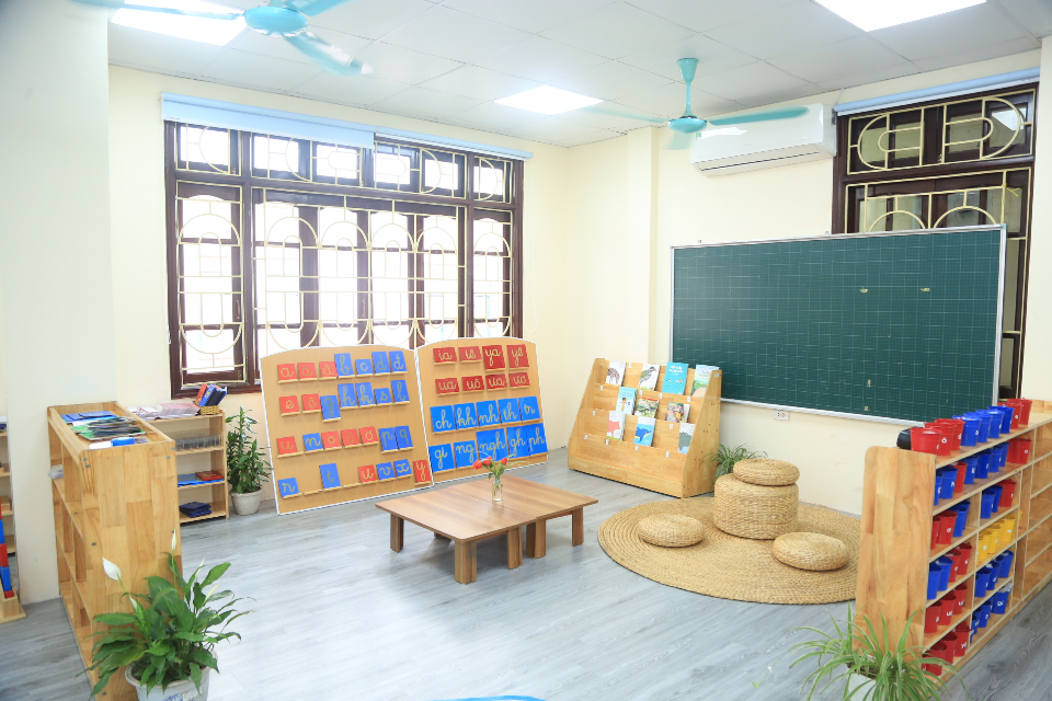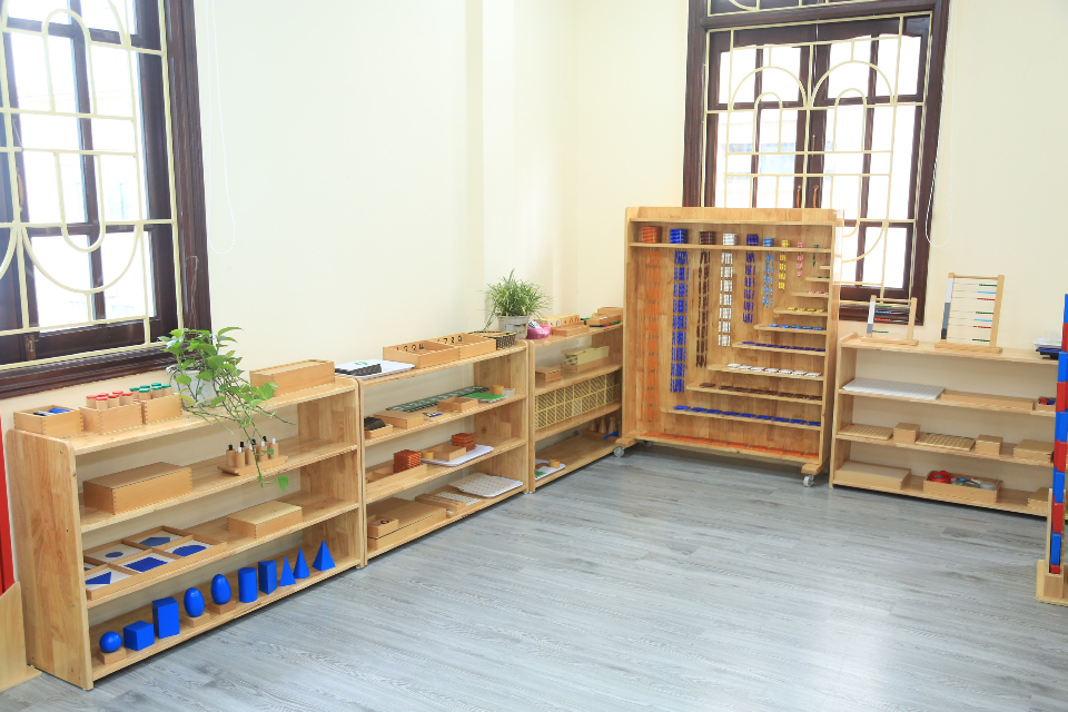 Trường gồm 5 phòng học, mỗi phòng có diện tích 90m2/ phòng học, lớp học nhiều cửa sổ, giáo cụ Montessori chuẩn quốc tế.