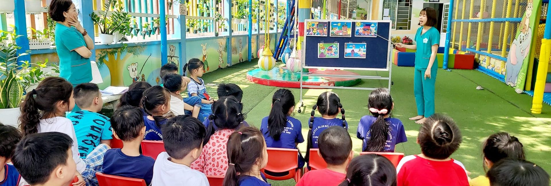 - Nhà trường không ghép lớp, không lầu để đảm bảo an toàn tốt nhất cho từng bạn nhỏ.