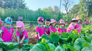 Bên cạnh đó, trường còn có khu vườn trải nghiệm dành cho trẻ, có vườn rau sạch, ăn quanh năm.