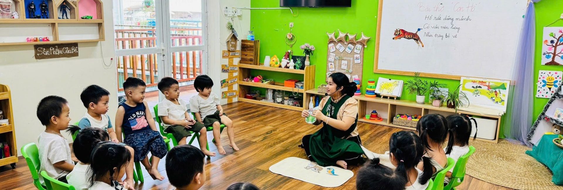 - Nhân Ái: Không gian rộng lớn xanh mát của Kiddo Ý giúp trẻ nuôi dưỡng một tràn tim tràn đầy yêu thương và lòng biết ơn. Với cái nhìn cảm thông và thấu hiểu, trẻ sẽ học cách lắng nghe và hỗ trợ những người xung quanh, từ đó nhân rộng lòng nhân ái trên mỗi trải nghiệm lớn lên của mình
