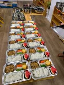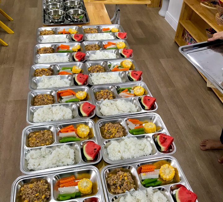 Thực đơn Âu – Á được thiết kế khoa học, đảm bảo đầy đủ dinh dưỡng và phù hợp với trẻ. Bếp ăn thực hiện đúng nguyên tắc bếp một chiều với trang thiết bị hiện đại.