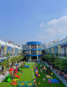 Hệ thống cơ sở vật chất đẳng cấp, trong khuân viên trường gần 4000m², thoáng mát, nhiều cây xanh, các phòng học rộng rãi từ 80 – 100m²/ phòng, thiết kế theo lối kiến trúc mở, chan hoà ánh sáng tự nhiên tạo nên môi trường giáo dục hiện đại, gần gũi, giúp học sinh thoả sức khám phá: