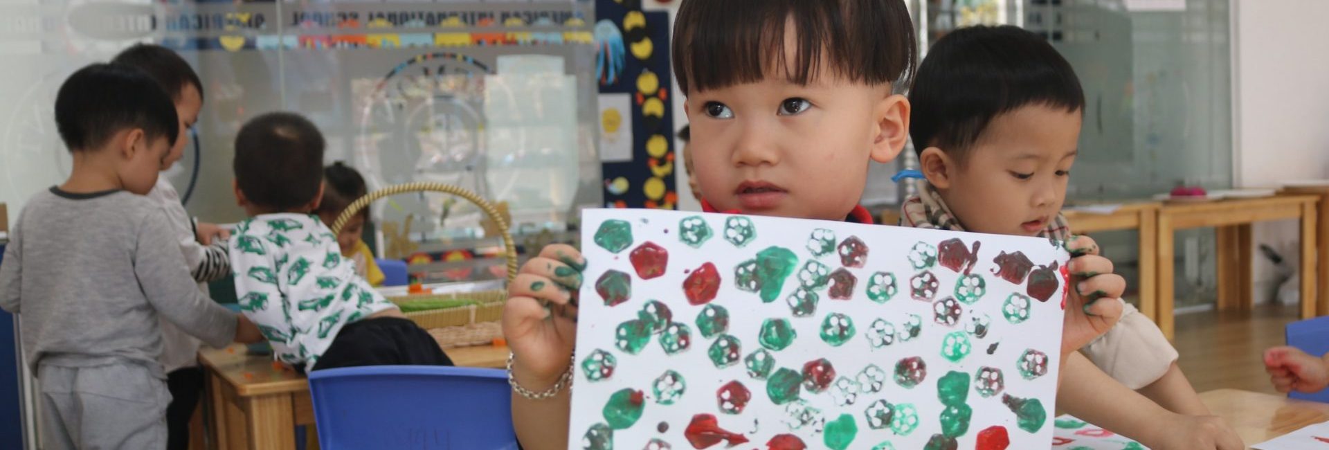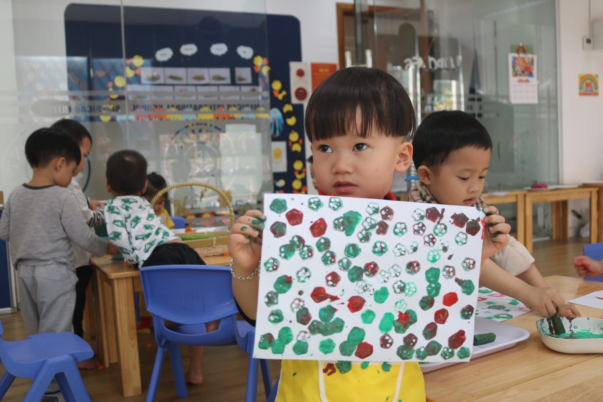 - Phòng học khang trang hiện đại với các thiệt bị hỗ trợ cho việc bé tiếp thu kiến thức tốt nhất.
