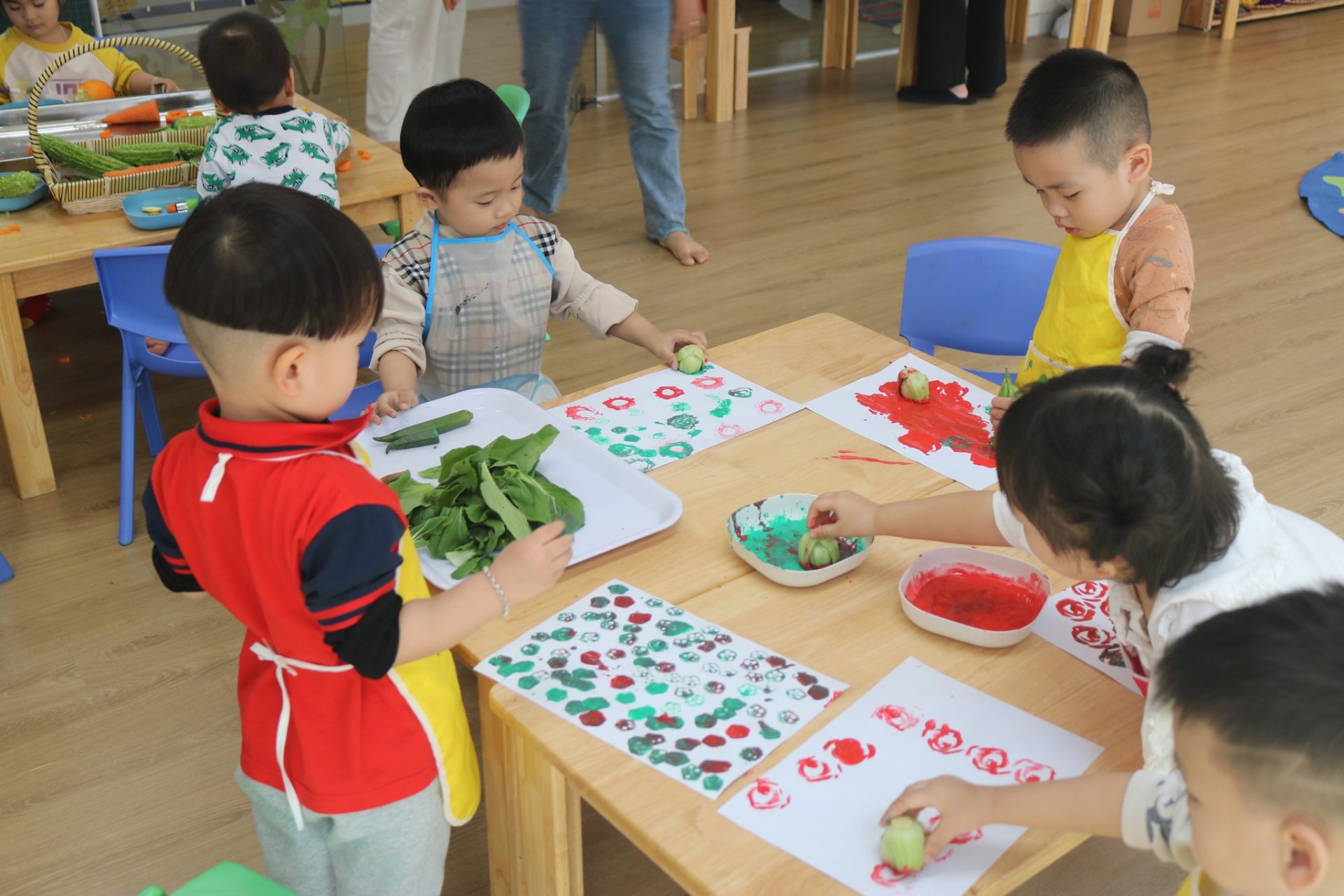 - Tư duy Sáng tạo và Biểu đạt: Trẻ học được cách trực tiếp bộc lộ khả năng, sở thích và hiểu biết. Ngoài ra, các em còn học được cách tôn trọng và đánh giá cao sự khác biệt văn hóa và quan điểm khi nhìn thấy người khác làm việc.