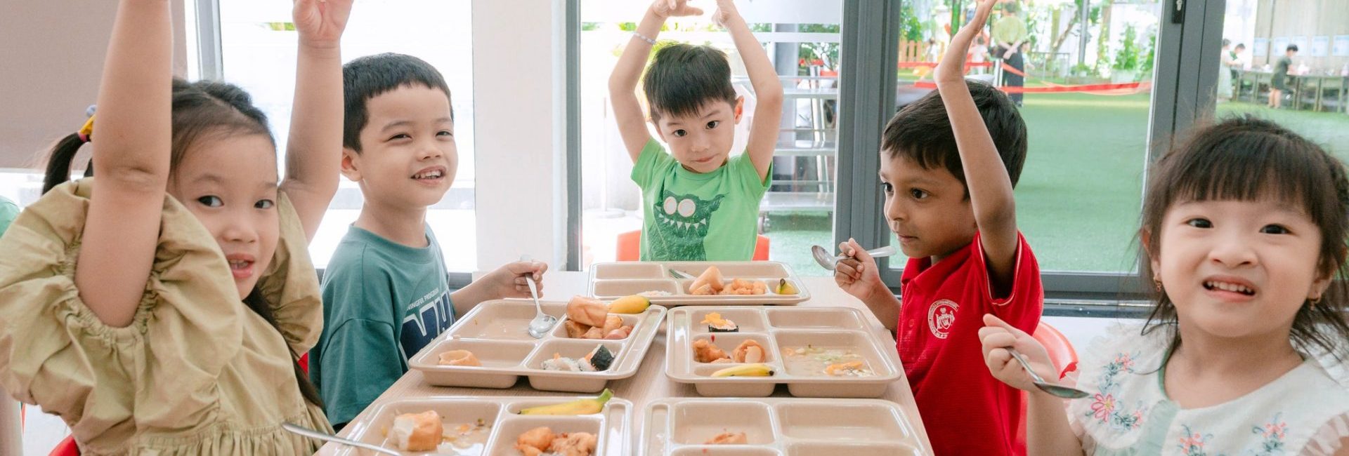 - Tất cả bữa ăn của các trẻ đều được nấu tại bếp riêng của nhà trường, đảm bảo an toàn vệ sinh thực phẩm.