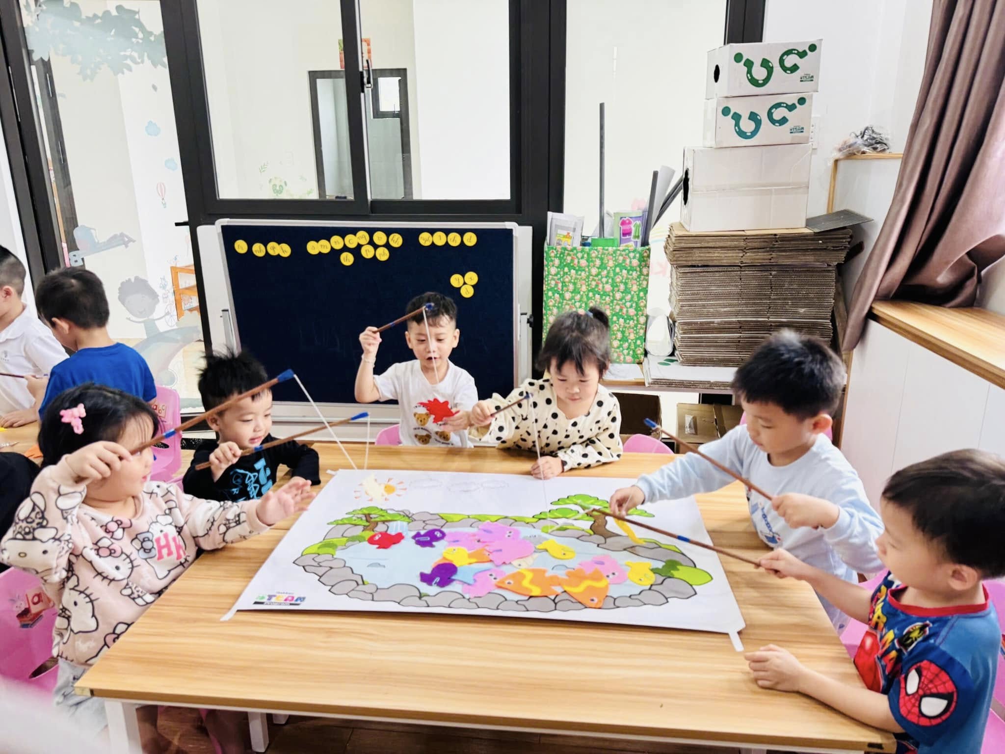 - Cơ sở vật chất rộng rãi, thoáng mát, khang trang. Phòng học rộng rãi, thoáng mát, diện tích 45m vuông với tổng số học sinh không quá 20 bé/phòng.