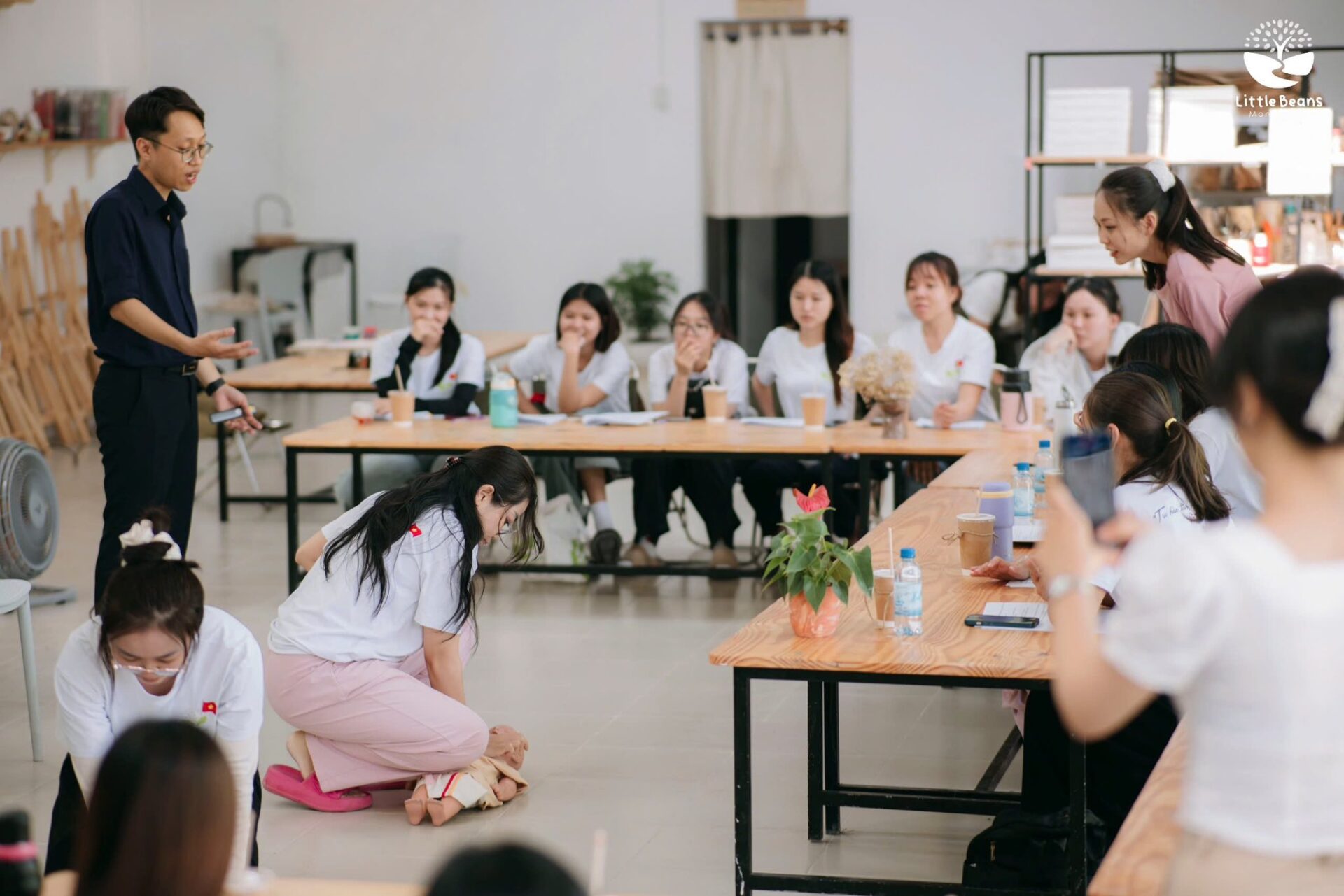 Đội ngũ giáo viên được đào tạo bài bản, tận tâm và giàu yêu thương. Tại Little Beans, giáo viên không chỉ đóng vai trò giảng dạy mà còn là người bạn, người đồng hành cùng trẻ trong hành trình khám phá và trưởng thành. Với sự thấu hiểu tâm lý lứa tuổi và tinh thần trách nhiệm cao, đội ngũ giáo viên luôn kiên nhẫn lắng nghe, quan sát và hỗ trợ trẻ phát triển một cách tự nhiên, an toàn và tích cực.