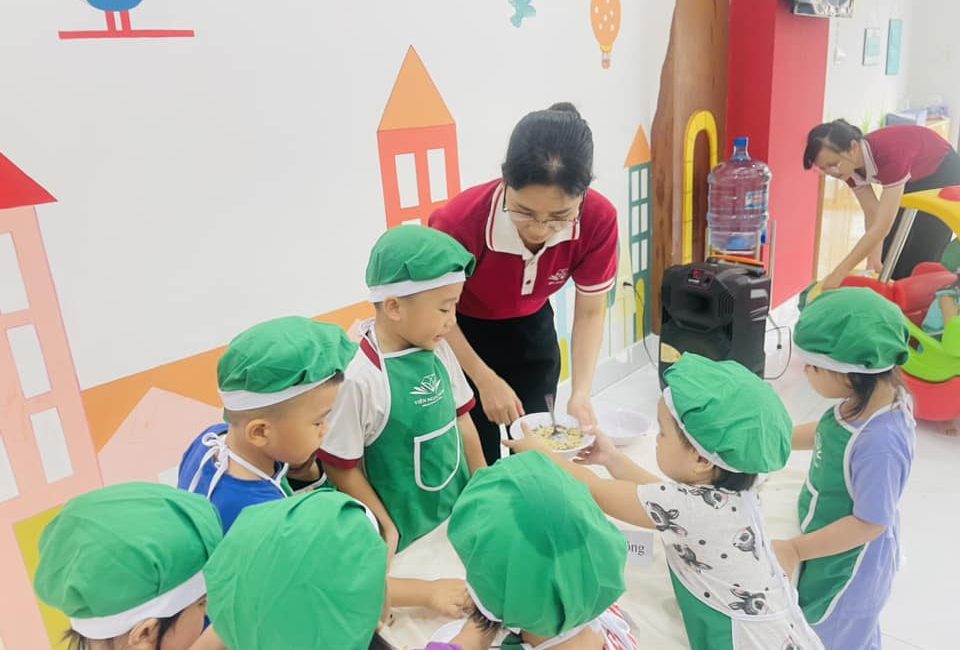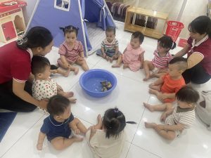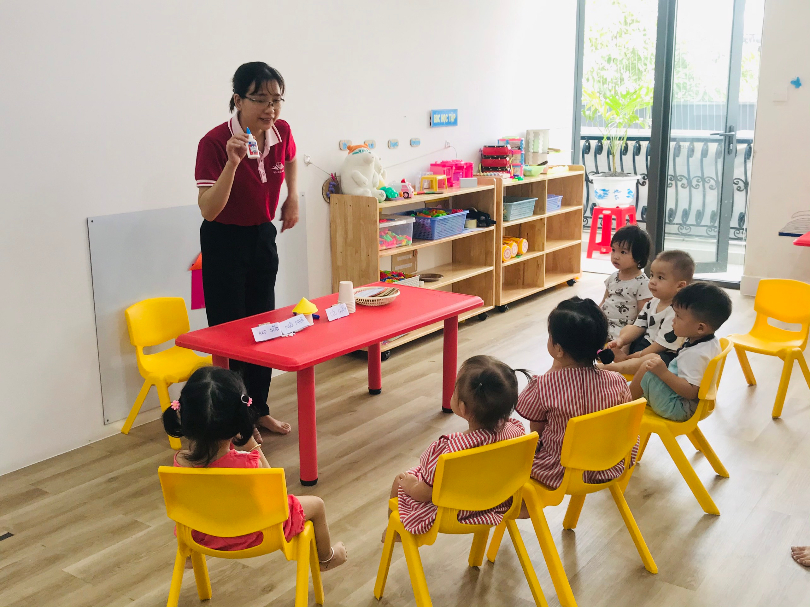 - Lớp nhà trẻ: tối đa 15 bé, 3 giáo viên chăm sóc.