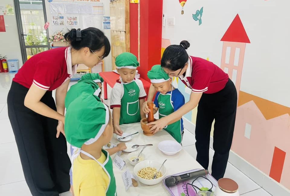 - Nguồn thực phẩm và nguyên liệu được nhà bếp nhập từ các đơn vị cung cấp thực phẩm uy tín theo quy định của Phòng Giáo Dục TP. Thủ Đức.